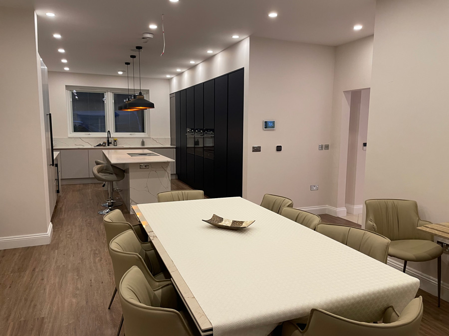 Although only a small project, by taking out one internal wall to join the original kitchen and dining rooms together and enlarging the original French doors to a sliding glass screen to enable a redesign as an open plan kitchen /diner with central island unit, this space has been completely transformed to the full satisfaction of our client.