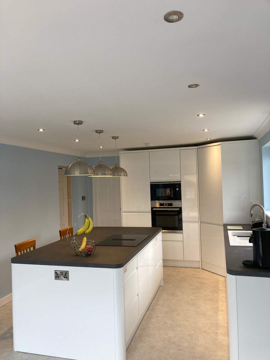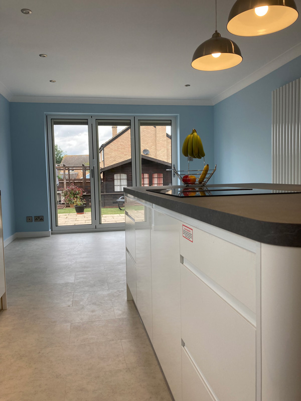 Although only a small project, by taking out one internal wall to join the original kitchen and dining rooms together and enlarging the original French doors to a sliding glass screen to enable a redesign as an open plan kitchen /diner with central island unit, this space has been completely transformed to the full satisfaction of our client.